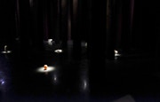 《KODAMA》(2023)は、木が林立する暗い森のなかで、キツツキの声を聞くような作品。大巻は弘前の森の中で、交信するようにキツツキが木を叩く音を聞いたという。人と人、近くと遠く、この世とあの世といった世界と世界をつなぐ交流に思いを馳せながら本作は制作された。床には海岸で大巻が拾得した様々なものが置かれており、海もまた交信の場であることが示されている。