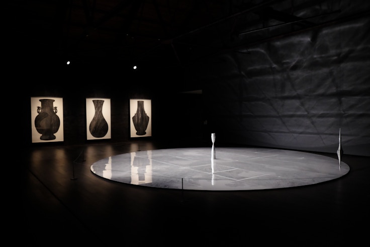 空間を変容させながら、鑑賞者の位相を自在に変化させるようなインスタレーションやパブリック・アートで知られるアーティスト・⼤巻伸嗣。その東北地方初となる個展「⼤巻伸嗣―地平線のゆくえ」が、弘前れんが倉庫美術館で開幕した。会期は10月9日まで。担当キュレーターは難波祐子、共同キュレーターに渡辺真也が名を連ねる。