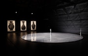 本展では、近年の代表作のひとつである「Liminal Air Space-Time」シリーズをはじめとした、新作インスタレーションを中心に展示。本展に際して大巻は青森県内各地の風物や自然、信仰などを取材し、その結果たどり着いた死生観を各作品に込めたという。
