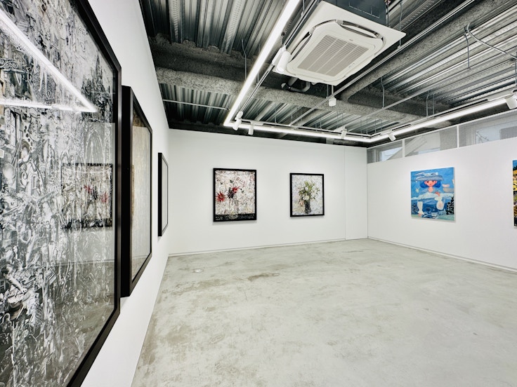 いっぽうのギャラリー2は8メートルの高い吹き抜けを有するスペースで、絵画からインスタレーションまで、多様な作品を展示できるように設計されている。