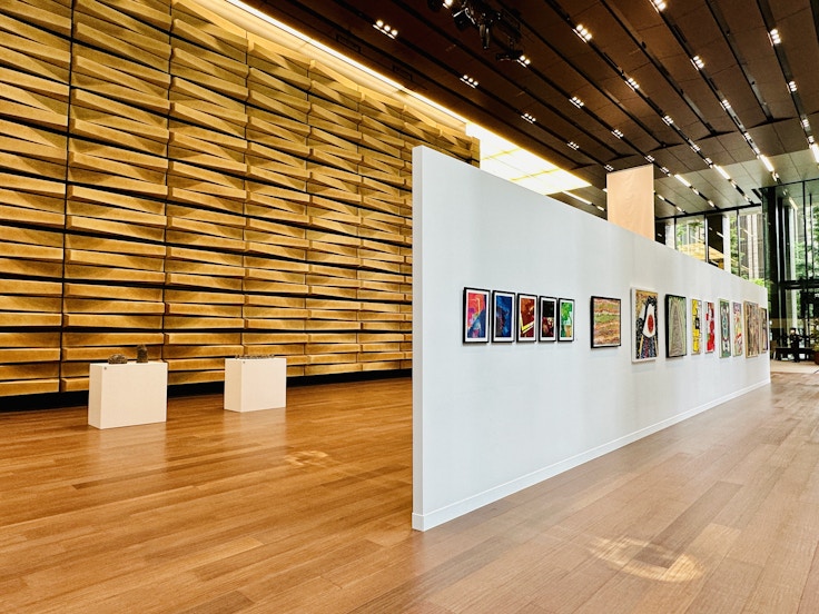 会場となる東京・大手町の三井住友銀行東館1階アース・ガーデンは、天井高9メートル以上、床面積は約470平方メートル以上という巨大空間だ。ヘラルボニーがこの規模のギャラリーで展覧会を開くのは今回が初だ。