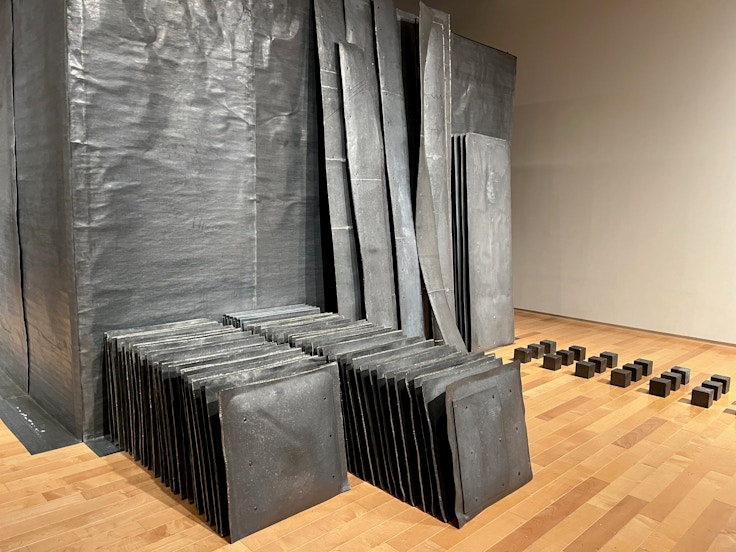 武蔵野美術大学が所蔵していた本作は、今回約30年ぶりの展示となった。袴田京太朗(造形学部油絵学科・教授)、伊藤誠(造形学部彫刻学科・教授)、戸田裕介(共通彫塑研究室・教授)らの協力を仰ぎながら、当時の資料を参照しつつ改めて鉄板を組み上げ、構築して再展示されている。