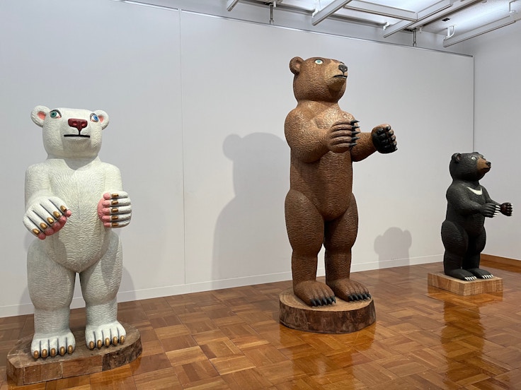 三沢は展覧会のパネルに、クマというモチーフについて「童話やアニメに登場する愛すべきキャラクターとしてのクマと、野生の獰猛なクマ。クマほど、人々の相反するイメージが同居する動物も珍しいかもしれません」というメッセージを寄せている。動物というポップなモチーフが目立つ本展だが、そこに対象を見て解釈しかたちにするという、三沢の造形についての思想が見て取れる。人間は動物をはじめとした対象をどのようにとらえているのか。そのアウトプットについて深く考えることができる展覧会となっている。