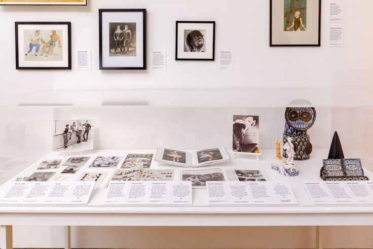 収集しているLGBTQ+の関連書籍や資料などが一堂に会した、館内の図書館における「ショウ・アンド・シェア:クィアリング・ザ・ライブラリー」は圧巻の内容だった。古くはマン・レイの写真やブルームズベリー・グループの創立メンバーの作家リットン・ストレイチーのアルバムから、映像作家デレク・ジャーマンのノート、1980年代のHIV感染予防関連のリーフレット、最新の書籍、写真集、雑誌、ZINEまでが並べられていた。