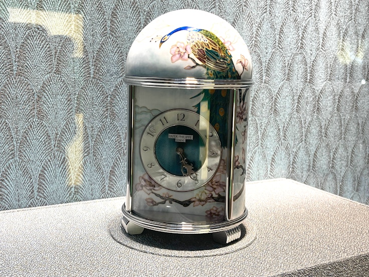 注目したいのは、パテック フィリップが保護、育成してきた希少なハンドクラフト技術の展示。七宝細密画、クロワゾネ七宝、手彫金、細密な木象嵌、手仕上げのギヨシェ装飾、ジェム・セッティングなどの時計にまつわる職人技術は、現在も同社によって継承されている。