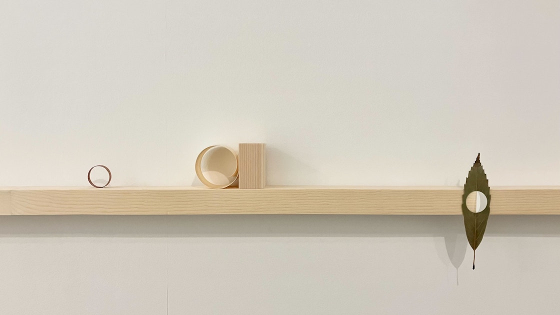 現在開催されているのは、その三澤の個展「Just by | だけ しか たった」だ。本展では「だけ しか たった」と表されるように、ささいな行為を加えただけでものの見方が変化するといった、完成された作品の手前にある「思考の立体エスキース」を会場内に点在させている。