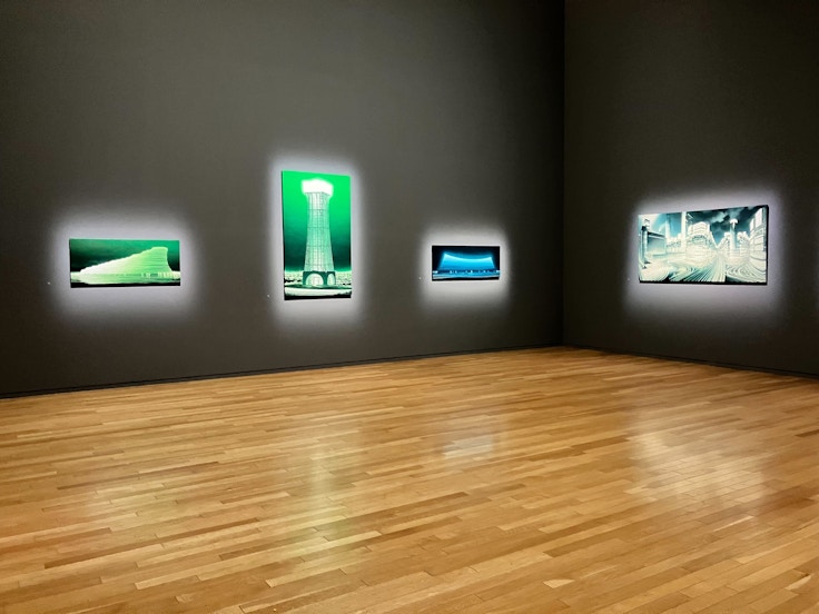 野又の作品群には、未来感がありつつも郷愁めいた感覚を思い起こさせる謎の建造物が登場する。建造物はあれど人の姿は一切描かれておらず、自然と人工物のみが一体となって存在している。これらの建造物は人間のためにつくられたものではないのかもしれない、そう想像することもできてしまう世界観だ。画面の美しさに反して、どこかディストピアを感じさせるのもこれらの作品の魅力といえるだろう。