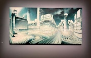 野又作品は写実的に細かな建造物を描いているように見えるが、近づいてみると、意外と大まかな解像度とタッチで描かれていることに気がつく。それでも立体感や空気感を表現できるのは、的確な描写力があるからこそなせる技だろう。