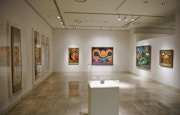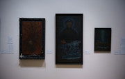 色彩豊かな描写で神々の復権を提唱した金井南龍は、日本の風景をモチーフに聖地を表現した。宮川隆はカンカカリャ(神懸かり)となって全国を放浪してカミと対峙し、シナベニヤに施した下塗りからスサノオの姿が自ずと現れたのが、三輪洸旗の作品だ。つまり「見神者たち」に集まるのは、内面に神が宿った「ミコトモチ」たちによる作品だ。