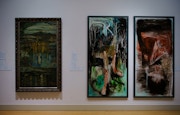 「幻視の画家たち」の章を前に、担当学芸員の江尻はこう話す。「幻は見ようと思って見えるものではなく、幻視・幻覚といったものは必然性があって見るものであり、そうした人知を超えた何かを感じ取れるものたちが描いた作品を集めました」。村山槐多や萬鐡五郎といった20世紀初頭の作家から、奄美の謎の生き物ケンムンを描く藤山ハン、本サイトで海外研修先から「トビリシより愛を込めて」を連載した庄司朝美まで、14名の作家が出品。