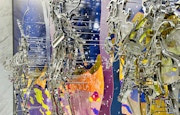 これをリニューアルさせた新たな中日ビルは、地下5階地上33階の高層ビル。「ザ ロイヤルパークホテル アイコニック 名古屋」や多数のショップが入居する複合施設だ。栄の新しいランドマークを目指すこのビルの2階のオフィスロビーに、ニューヨーク・ブルックリンを拠点に活躍する松山智一のアートワークが恒久設置された。