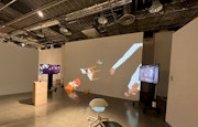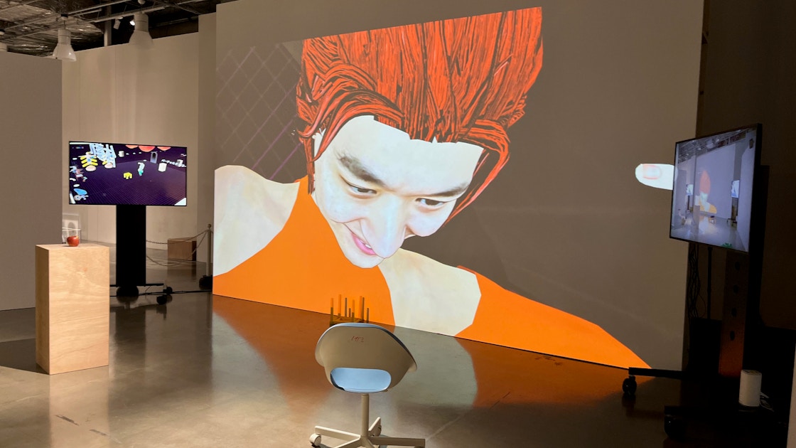 「バーチャルな身体」では、近年普及したVRの世界を取り扱う作品が展示される。ノガミカツキ《仮想支配》は、VRに没入した結果、生身の身体が持つ物理的な制約を感じる事例に着目した作品。こうした身体感覚が侵食される状況を、VRの身体によってなんとか克服しようと試みるパフォーマンス型作品だ。