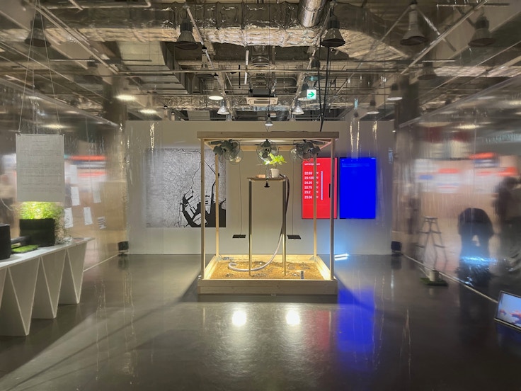 なお、会場の中央には中央には「プレイグラウンド」が設置され、展覧会を見た人々が提示されたテーマを考える場として、そしてその刺激を受けながら仕事をする場としても機能している。
