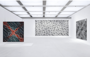 今回の展覧会は、ディン作品のこのような特徴に沿って「意味と無意味」「棲息と遊離」「具象的な抽象」のセクションで展開。最後のセクション「生きもの」では、ディンが昨年チベットでの個展に際したエベレスト巡礼で着想を得て、初めてクロス記号を使って普遍的に存在する生命を表現し、ヒューマニズムの思想を込めた新作が展示されている。