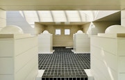 建築は全フロアを貫く階段を中心とした、シンメトリックなデザイン。入口から下へと降りていく構造となっており、左右に設けられた部屋が「展示室」のように独立しているのが特徴だ。また原建築の特徴である開口部が随所に設けられ、外光を取り込んだ室内は非常に明るい。