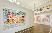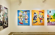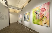 本展では、日本や中国においても伝統的な画題でもある寒山拾得を横尾が独自に解釈。箒に乗った寒山やトイレットペーパーの巻物を持った拾得、あるいはアルセーヌ・ルパンやエドガー・アラン・ポー、AIやロボットをモチーフにしたものなど、あらゆる世界を縦横無尽に駆け巡るような、時空を超えた物語が紡ぎ出されている。