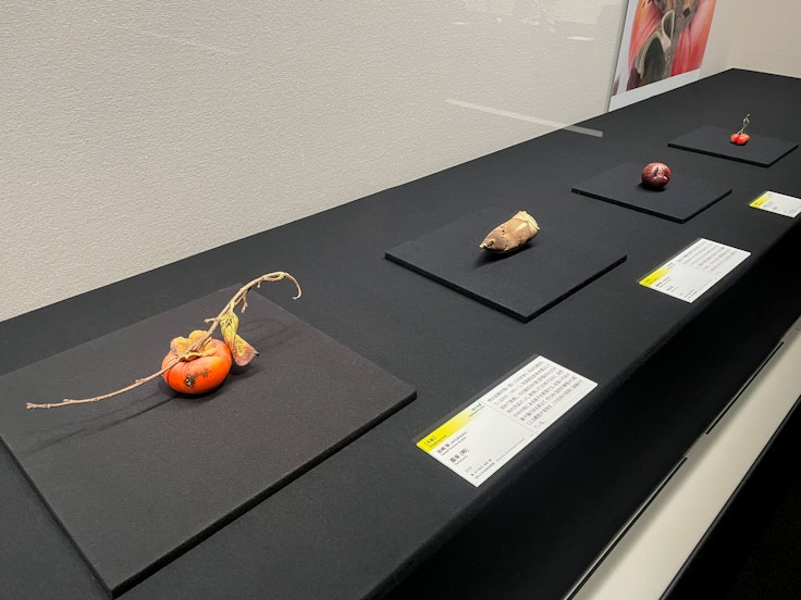 一木造りでサクランボやイチジク、タケノコといった複雑な自然物を制作する岩崎努の作品は、安藤緑山の精巧な象牙彫刻と並べて展示。明治工芸の思想が現代の作家に受け継がれていることを教えてくれる。