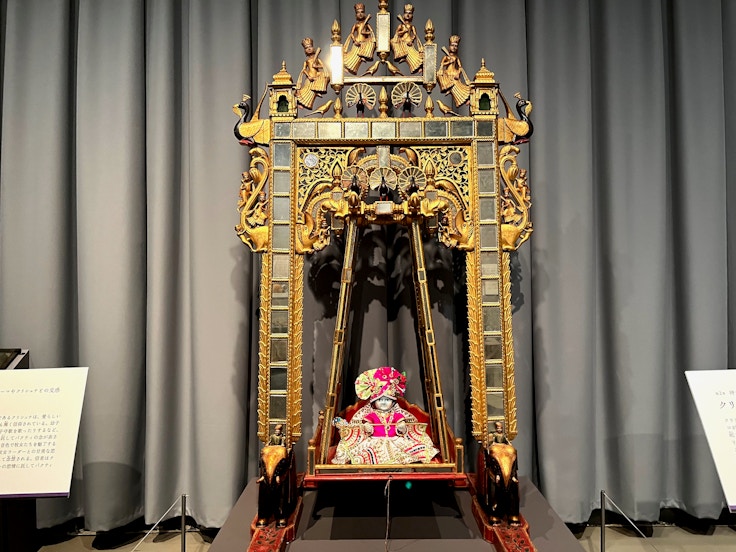 会場では祭祀に使用される像や道具とともに、その様子を記録した映像を上映。臨場感をもってヒンドゥーの祭りを体感できる。