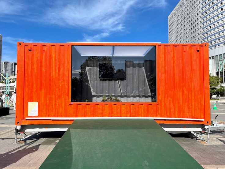 細井美裕の《ラリー・ショウ》は、コンテナ内部に入った観客に、音によって広い世界を「覗き見」させるような作品だ。世界中の海岸で採取されたという音がコンテナ内に充満しており、内部に入った観客は、お台場の海からつながっている世界中の土地について想像力をふくらませることができる。