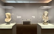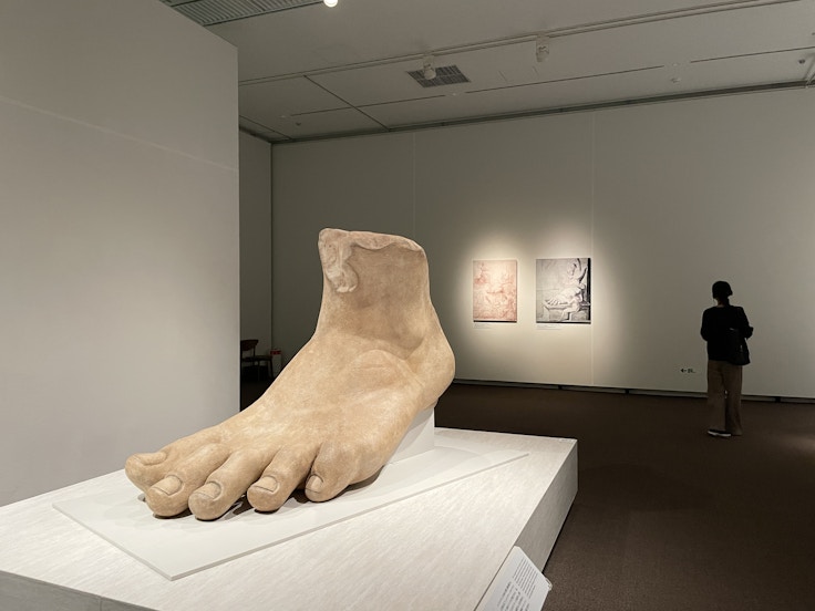 第2章では、歴代ローマ皇帝の肖像をはじめ、ローマ帝国ゆかりの女性たちの肖像など、数々の頭部彫刻や胸像が並ぶ。また、帝国の栄華を象徴する《コンスタンティヌス帝の巨像》の頭部や、地球を思わせる球体を持つ手部を原寸大複製した迫力のある巨大作品も同章で見ることができる。