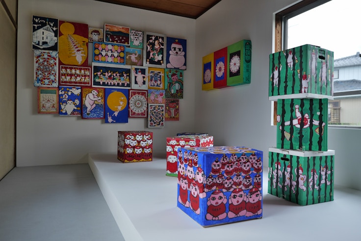 馬場家では、桜井旭がオンゴーイングで《馬場家を描くプロジェクト》を続け、その奥のKOBO Brew Pubはささきなつみが「別の生き物としてありたい」という思いから表現する「リンジン」がモチーフの作品を展開。酒蕎楽くちいわ 青蔵では村山悟郎がジャガード織機を駆使した絹の新作と資料に用いた貝殻をインスタレーションに空間に並べ、桝田酒造店 沙石では、古川流雄による光と色の関係を考察から生まれた立体作品と、内モンゴル出身のO33が羊の腸を素材に生死や内外の二重性を考えさせる空間作品を展示。