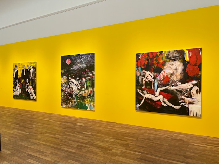 Room3「具象絵画」は、井田が美術史に対峙し、ときに学び、ときに乗り越えようとした軌跡ともいえる具象作品が並ぶ。井田にとって具象絵画を制作するという行為は、美術史に名を残す芸術家と向き合うと同時に、自己の精神と向き合う行為でもあるのだという。コロナ禍や自身の子供の出生といった身の回りの出来事と、それに伴う自身の精神のゆらぎもまた、各作品の色調や明暗に影響を与えていると語る井田。この部屋は美術史であると同時に、井田の個人史でもあると言える。