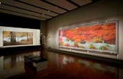 いっぽう並べて展示されている奥田元宋の《奥入瀬(秋)》は、実際には見られないという真っ赤な紅葉や急流が演出されている。多彩な赤色を使いこなした「元宋の赤」が見られる大作と言えるだろう。