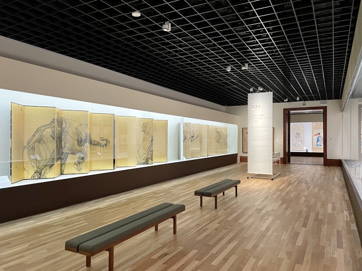 展覧会の前半と後半をつなぐ展示空間では、「1日1回は写生をする」と言われる栖鳳の写生帖がデジタルデータとともに紹介。続く第4章「躍動する写生」も、栖鳳が絵画制作において重要視した「写生」に焦点を当てている。