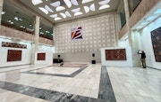 10分ほど歩くと、1974年に設立された中央展示ホールが見えてくる。設立当初からアートギャラリーとして活用されてきたこの建物は、現在ウズベキスタン芸術家連合のメンバーらの展示が行われている。外観の模様はウズベキスタンが名産でもあるコットンの花をイメージしてつくられており、屏風のような折りを感じさせる造形がユニークな建築物だ。