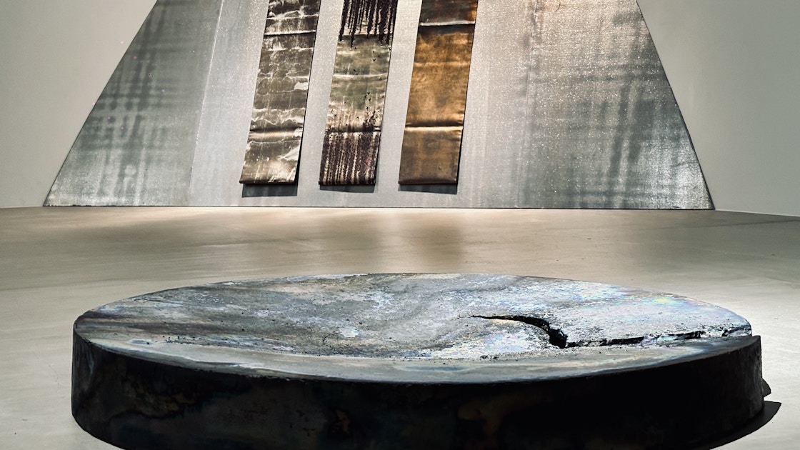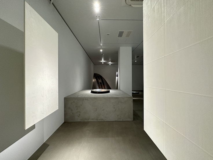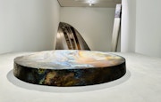 また橋本知成は今年、和歌山県立近代美術館で開催された個展「なつやすみの美術館 13 feat. 橋本知成」でも大きな注目を集めた作家だ。陶土を素材に使用しながらも、表面に金属や鉱物のような光を湛えた橋本の作品群。水面に揺蕩う光のように床置きされた作品は、本展コンセプトを象徴するかのようだ。