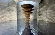 メディア・アーティストの落合陽一は、安藤忠雄 / 光の美術館内にて《ヌルの共鳴:計算機自然における空性の相互接続》を展示している。LEDディスプレイで示される計算機自然と、あわせ鏡のように設置される新作の有機的な変形ミラー。これらは互いに共鳴しつつも、「論理性と無常性」「柔軟性と流動性」といった対比的な存在でもあり、鑑賞者はその狭間で感じられる作品同士の共鳴を体感することができるだろう。