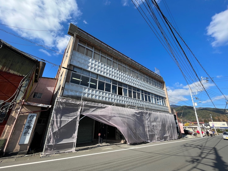 人口に対しての飲み屋の数が日本一だと言われていた歓楽街「西裏」に氷を提供するために開業していた富士製氷。その建物をリノベーションし、アートギャラリーとして生まれ変わらせた「FUJIHIMIRO」では、デザイン展「甲斐絹をよむ」が開催されている。
