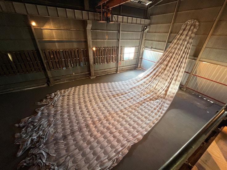 イスラエル生まれ、シカゴを拠点に活動するアーティスト、ネリー・アガシは、日本初となる大規模インスタレーション《mountain wishes come true》など複数の作品を発表。とくに注目したいのは、地元の繊維研究機関である山梨県産業技術センターとの対話から生まれた、「柔らかな建築」をかたちづくる大型インスタレーション作品だ。ビルのファサードを布を使って新たな姿に柔らかく変容させ、物質の異なる状態を探求している。