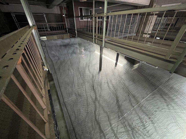 今年から会場に加わったのが、かつての織機の工場跡地である「旧山叶(やまかの)」。この地上約9メートル、幅約20メートルの広大なスペースでは、ネリー・アガシ、池田杏莉、スタジオ ゲオメトル、顧剣亨、ジャファ・ラムの5名の作品が展示されている。