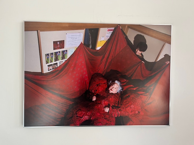 KURA HOUSEは、1950年代に建てられ、かつて山梨中央銀行吉田支店長が管理していた建物。2階建と3階建の蔵に挟まれたかたちで住居が設置された特徴的な建築だ。ここでは清川あさみが9点の作品を展示している。