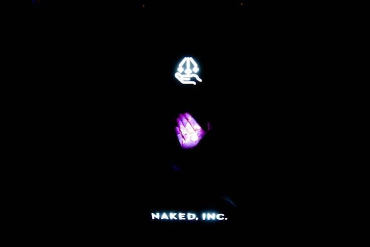 境内に入ると、まず「NAKEDディスタンス提灯」を受け取る(通常版は無料。展示された提灯の光の色に呼応する連動提灯は+300円)。境内に植えられた桜と橘の木にちなみ、それぞれの花の模様が光となって現れるこの提灯は、参拝客同士の光が重ならないことでディスタンスを保つという意図でデザインされたのだが、この提灯をもつと、来場者もこの夜間参拝の演出に加わる仕掛けだ。