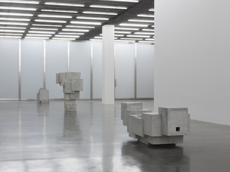 このエキシビションは、異なる5つの作品を通し、人間の体とインダストリアルの関係に迫ることを目的としているという。コンクリートやリサイクルされたスチール、古い地層を掘り起こして得た土でつくられたブロックなどを素材に、人の体のフォルムとその動きを考察する。キューレーションはゴームリー自ら手がけているという。