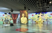 体感型デジタルアート劇場は、約35分にわたる全12幕で構成。若きダリに大きな影響を与えたスペイン南東部の小さな村「カダケス」をテーマにした作品をはじめ、宗教的なモチーフを驚くべき画力で描いた作品や、ダリが手がけた高級ジュエリーや室内空間のデザイン、そしてシュルレアリスム時期の代表作など、異なる時期のダリの作品のイメージを楽しむことができる。