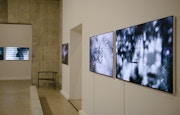 光と影が抽象的な画面を描きながら移ろい、時間を忘れて見入ってしまう12点の映像作品。あわせて12点の写真作品も展示されており、そこには、共同脚本およびプロデューサーとして映画に携わった高崎卓馬が手がけた4点の詩が添えられている。いずれも「風が吹く」の1行から始まり、木漏れ日の移ろいが自身とどのように関係しているのかを端的に綴っている。