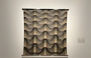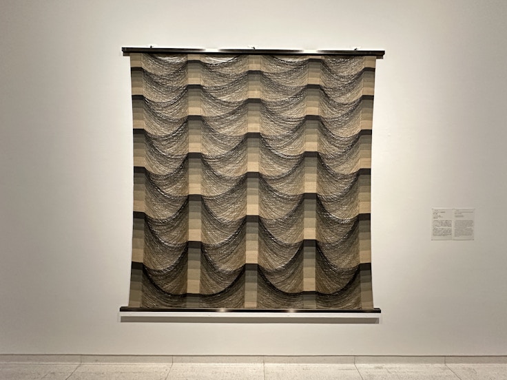 展示冒頭では、小林の名前が世界に広く知られるきっかけとなった《吹けよ風》が展示。タペストリーの綴織の間に山の稜線のように垂れ下がる緯糸が、美しい陰影を生み出す作品だ。
