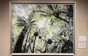 大賞を受賞したのは北川安希子《囁き―つなぎゆく命》だ。沖縄・西表島のオオタニワタリが生い茂るジャングルをモチーフにした本作は、亜熱帯の森林の木々を仰ぎ見るような構図で描いた作品だ。空から降り注ぐ陽光の明るさと、繁茂する生命力が対比された、臨場感あふれる一枚だ。