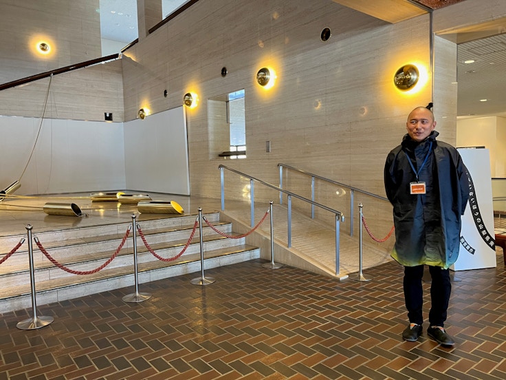 鑑賞者の時間の感覚も刺激されるだろう。ヘッドセットを外せばそこは誰もいないロビーだが、VRのなかではパフォーマーたちがたしかに存在していた。この経験は、過去の時間の積み重ねがいま目の前の風景をかたちづくっていることを想像させる。それは、閉館後に学芸員が収蔵品を点検し、夜間は警備員が巡回し、そして朝になれば清掃員が床を磨くといった時間を経て、眼の前の空間が存在するという想像力だ。「どこかではないここ」を再現する本作は、「ここ」が多様な層の重なりによって支えられているを露わにする作品とも言えるだろう。