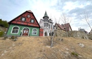『魔女の宅急便』の冒頭、主人公・キキが魔女の修行に旅立つ前に両親と住んでいた2階建ての家。邸宅の前の庭園には作中で描かれていたように、四季にちなんだ草花が植えられている。