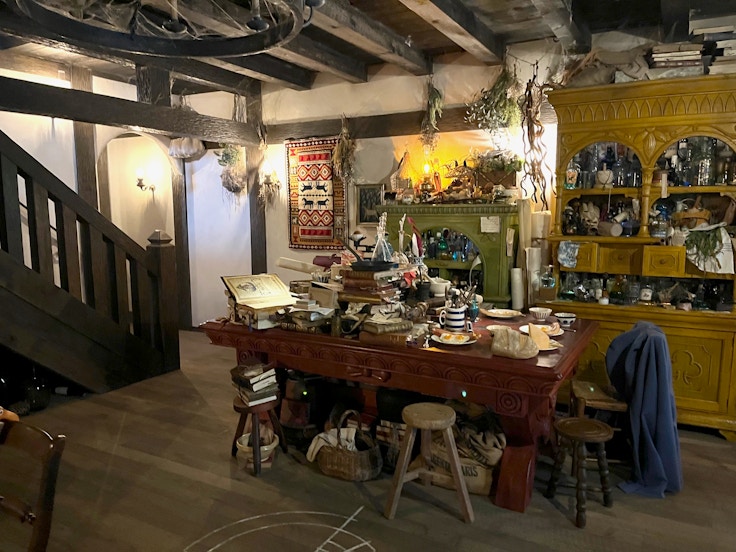 『アーヤと魔女』の主人公・アーヤが引き取られた家を再現した「魔女の家」。魔女、ベラ・ヤーガのあやしげな作業部屋には、魔法の材料がところ狭しと並んでいる。
