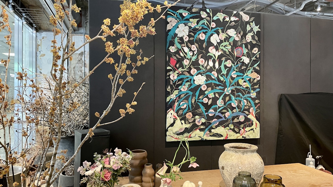 植物画を主な題材とし、植物にまつわるエピソードや土地に長く伝わる知恵や知識にも着目し、現代的な問題意識を内包した作品を発表する浅野友理子はフラワーショップ・bois de guiで、韓国から宮城に嫁いできたという女性に教えてもらったツルニンジンや、自宅の庭に祖母が植えたホトトギスを描いた作品を展示。様々な土地での記憶を感じとることができる。