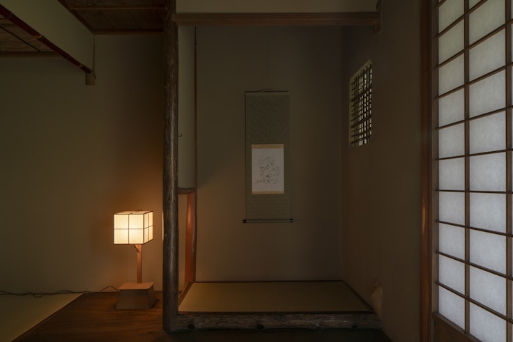 経堂では田村友一郎が新作インスタレーション《田村/TAMURA》を発表。能の演目である「田村」と、清水寺境内にある田村堂から着想された作品を、薄暗い光とオリジナルの音楽のなかで堪能してほしい。