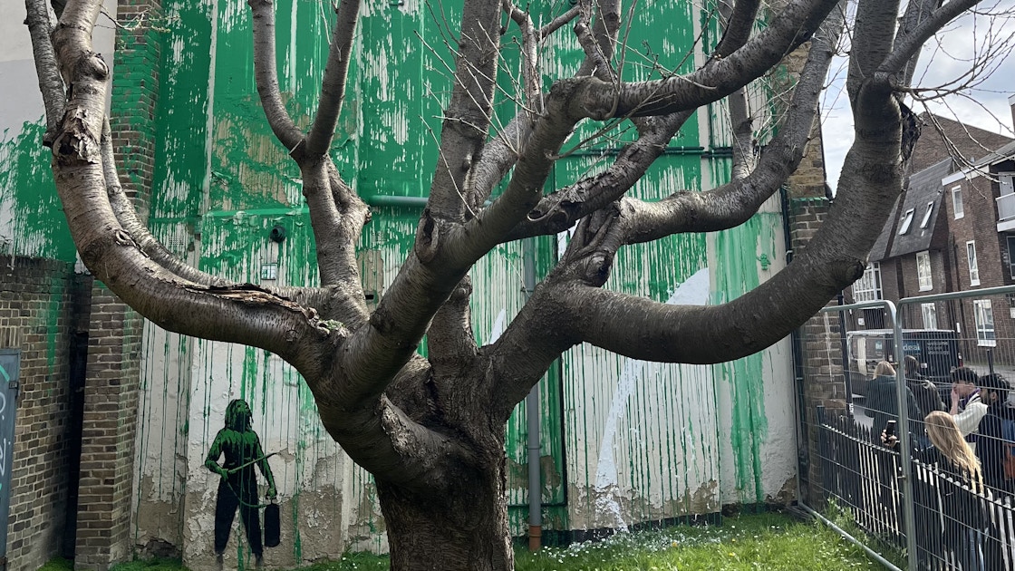 バンクシーの新作がロンドンに出現した。3月18日に本人がインスタグラムで自身の作であることを認めて以来、ほぼすべてのイギリスの主要メディアが大きく報道。現場に大勢の人々が詰め掛けているばかりではなく、数々のトピックスも湧き上がって連日ニュースとなっている。