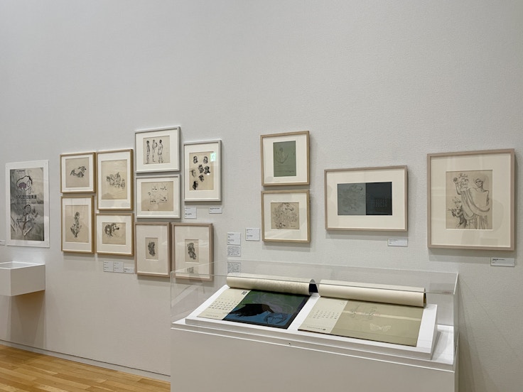 「もうひとつの大きな見どころとして、貴重な原画類を数多く展示している」(瀧上)。宇野の繊細で華麗なデッサンや、校正紙に書き込まれた細やかな指示などを通じ、その確かな描写力やデザインへのこだわりを身近に感じることができる。