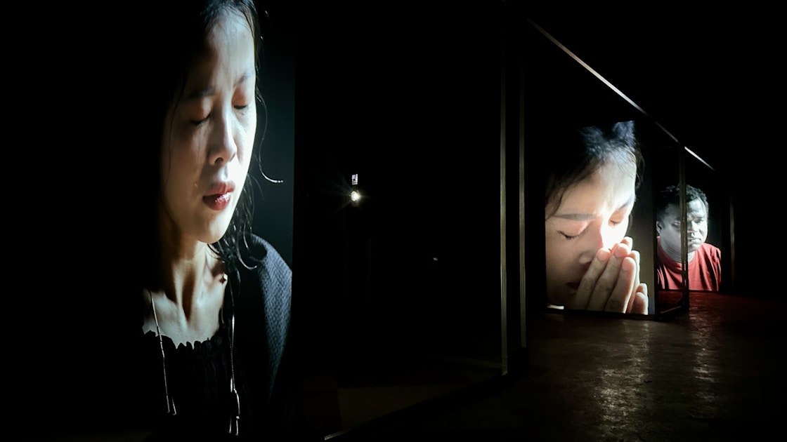 映像の出演者は、公募によって選ばれた佐伯市民を含む老若男女20名。演者それぞれが言葉にならない感情を発露する様子が、大きなスクリーンに映し出されている。