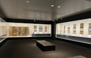 また、三者の美意識の紹介とともに、三井記念美術館を象徴するコレクションのひとつである《志野茶碗(銘 卯花墻)》(桃山時代・16〜17世紀)も、国宝の名碗として紹介されている。本品がいつごろ焼かれたのかはわかっていないが、現在にいたるまでの茶の湯の歴史のなかで、大きな存在であり続けている。